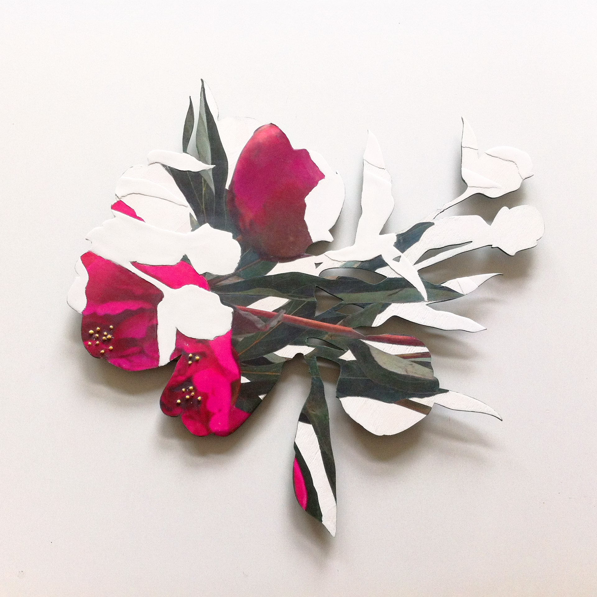 Het uitgangspunt voor de serie is een afbeelding van een bos Pioenrozen. Het silhouette van de bos is vijf keer uitgezaagd en vervolgens gedraaid en/of gespiegeld. Daarna is elk paneel met een ander gedeelte van de afbeelding beplakt en soms weer opnieuw bedekt door een wit silhouette, zoals in een bos bloemen ook de ene vorm de andere afdekt. Hierdoor ontstaan intrigerende composities, waarin geen enkel detail nog vanzelfsprekend is, maar beelden nog wel te herleiden zijn.